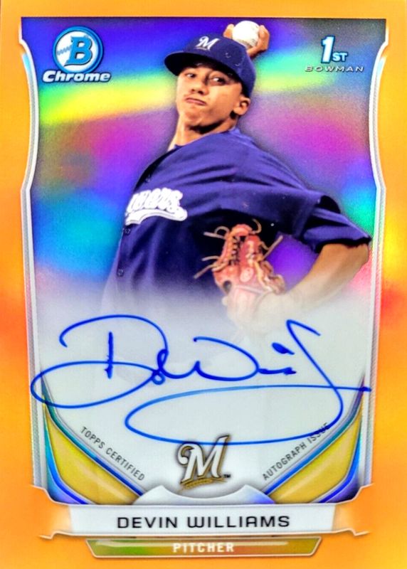 Devin Williams 2014 Bowman Chrome #BCAP-DWI Prospect Auto - Orange Refractor /25 (1st) RAW Price Guide