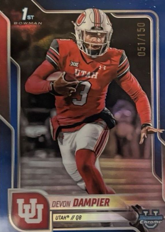 2025 Bowman Chrome U Blue Refractor Devon Dampier #3 /150 Utah Utes