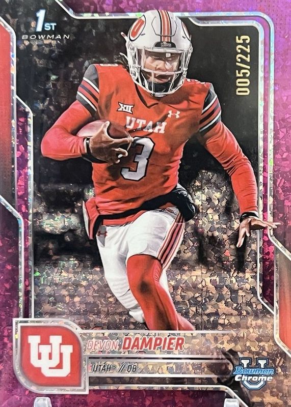 Best Prices Available For Sale of Devon Dampier 2025 Bowman Chrome University #3 Fuchsia Mini-Diamond Refractor /225 (1st)