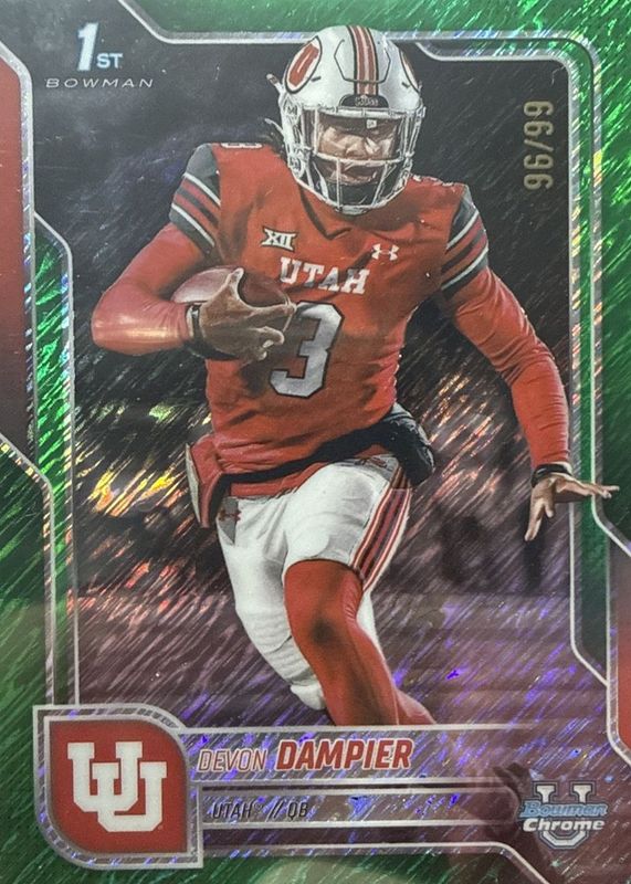 Devon Dampier 2025 Bowman Chrome U Green Shimmer #/99. Utah Utes. Bowman 1st
