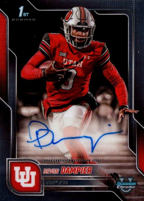 2025 Bowman 1st Chrome University Football Devon Dampier, Utah RC Autograph