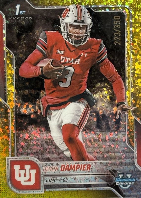 The Devon Dampier 2025 Bowman Chrome University #3 Yellow Mini-Diamond Refractor /350 (1st) card in Raw condition has moved up $1.26 (+127%) in the last 30 days and was last sold for $2.25 .
