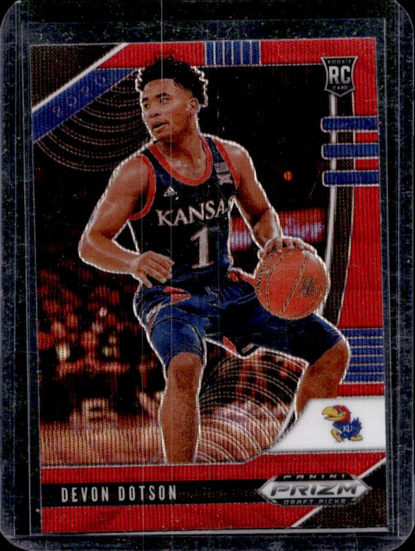 The Devon Dotson 2020 Prizm Draft Picks #32 Ruby Wave Rookie card is 1 of 87 Devon Dotson's card variations in the 2020 Prizm Draft Picks set being tracked by Sports Card Investor, including #72 Base, #32 Base, #72 Choice Blue Yellow Green, #32 Choice Blue Yellow Green, and #72 Fast Break.