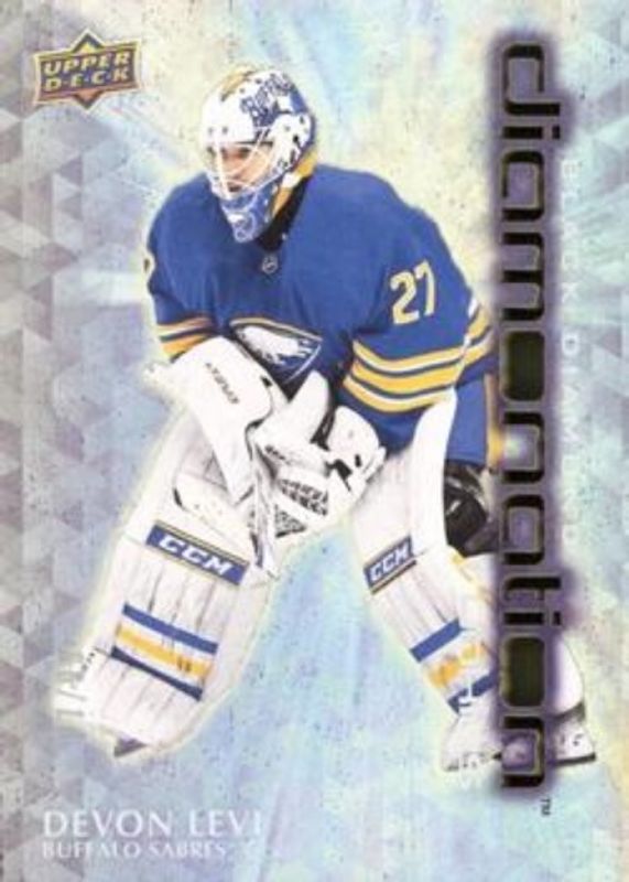 The Devon Levi 2023 Upper Deck Black Diamond #DR-DL Diamonation Rookies /99 card is 1 of 39 Devon Levi's card variations in the 2023 Upper Deck Black Diamond set being tracked by Sports Card Investor, including Base /349, Red /75, Blue /25, Green /10, and Diamond Relics /5.