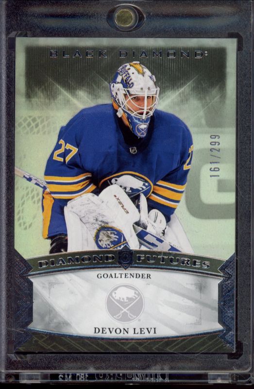 The Devon Levi 2023 Upper Deck Black Diamond #BDF-DL Diamond Futures /299 Rookie card is 1 of 39 Devon Levi's card variations in the 2023 Upper Deck Black Diamond set being tracked by Sports Card Investor, including Base /349, Red /75, Blue /25, Green /10, and Diamond Relics /5.