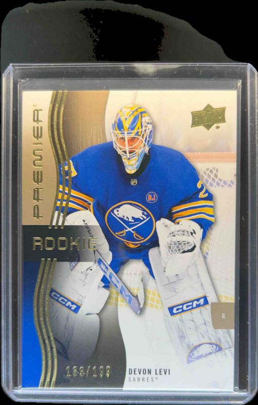 The Devon Levi 2023 Upper Deck Premier #119 Bronze /199 Rookie card is 1 of 30 Devon Levi's card variations in the 2023 Upper Deck Premier set being tracked by Sports Card Investor, including Base /399, Gold /65, Ruby /49, Rose Gold /25, and Fight Strap /15.