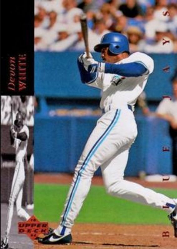 The Devon White 1994 Upper Deck #137 Base card is 1 of 4 Devon White's card variations in the 1994 Upper Deck set being tracked by Sports Card Investor, including #137b Base, #137 Electric Diamond, and #137b Electric Diamond.