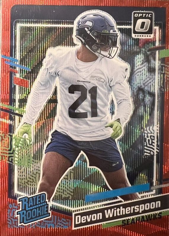 Auctions Ending Soon for Devon Witherspoon 2023 Donruss #389 Optic Preview - Red Wave Rookie RAW