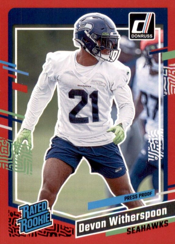 2023 Donruss Devon Witherspoon Red Press Proof Rated Rookie RC #389 Seahawks