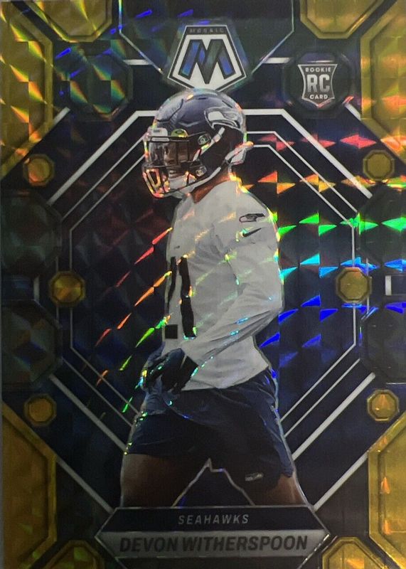 Recent Sales of Devon Witherspoon 2023 Mosaic #313 Choice Black Gold /8 Rookie Raw