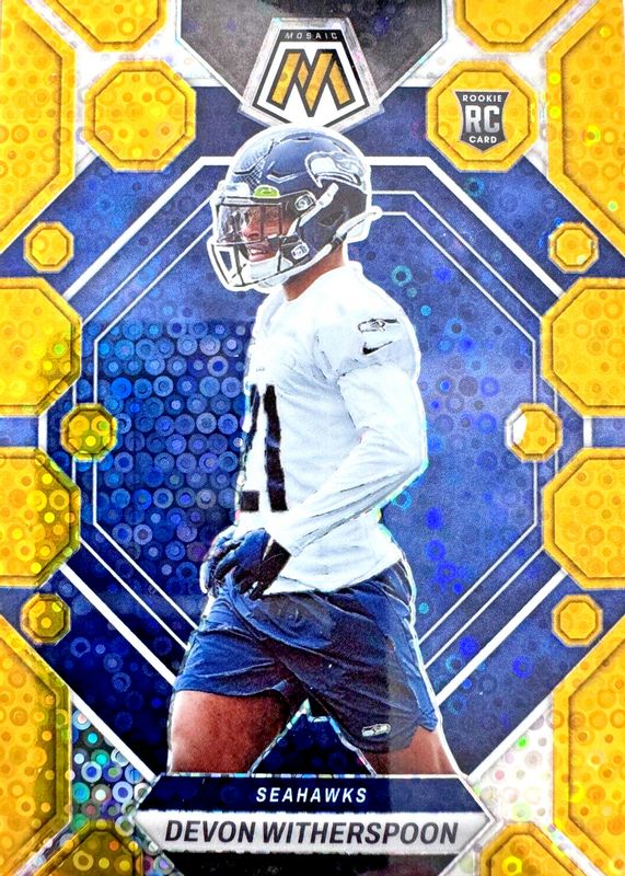 Recent Sales of Devon Witherspoon 2023 Mosaic #313 No Huddle Gold /10 Rookie Raw