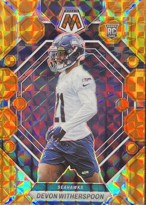 Recent Sales of Devon Witherspoon 2023 Mosaic #313 Orange /199 Rookie Raw