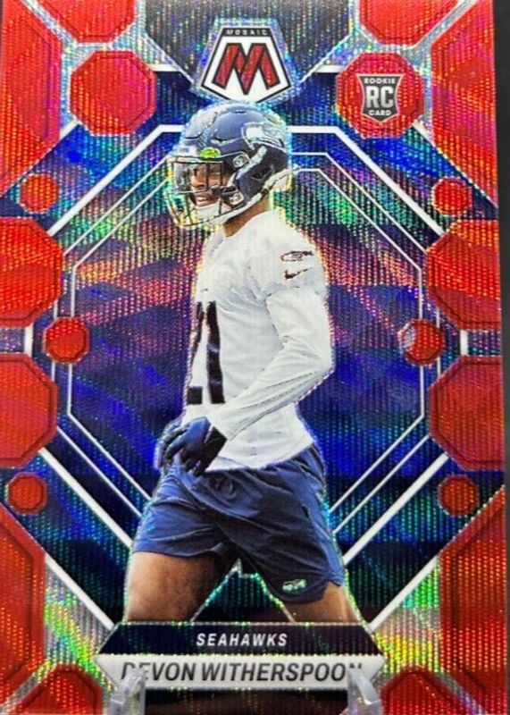 Recent Sales of Devon Witherspoon 2023 Mosaic #313 Red Wave /9 Rookie Raw