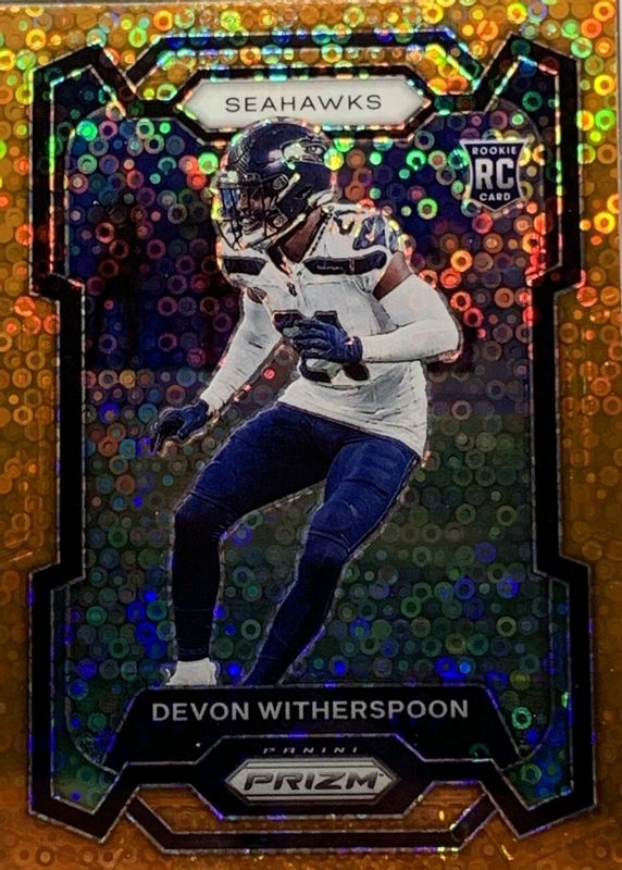 2023 Prizm Orange Disco Prizms Devon Witherspoon Rookie Seattle Seahawks #389 +