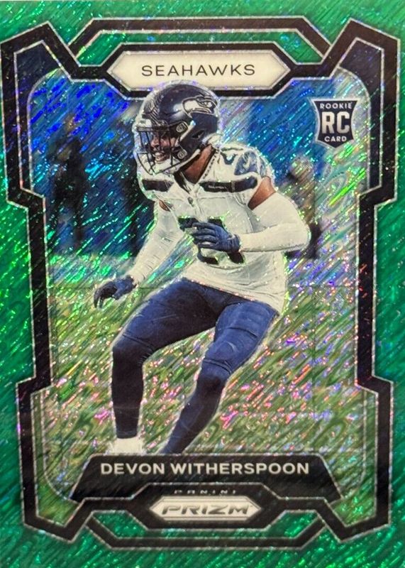 Auctions Ending Soon for Devon Witherspoon 2023 Prizm #389 Green Shimmer /5 Rookie RAW