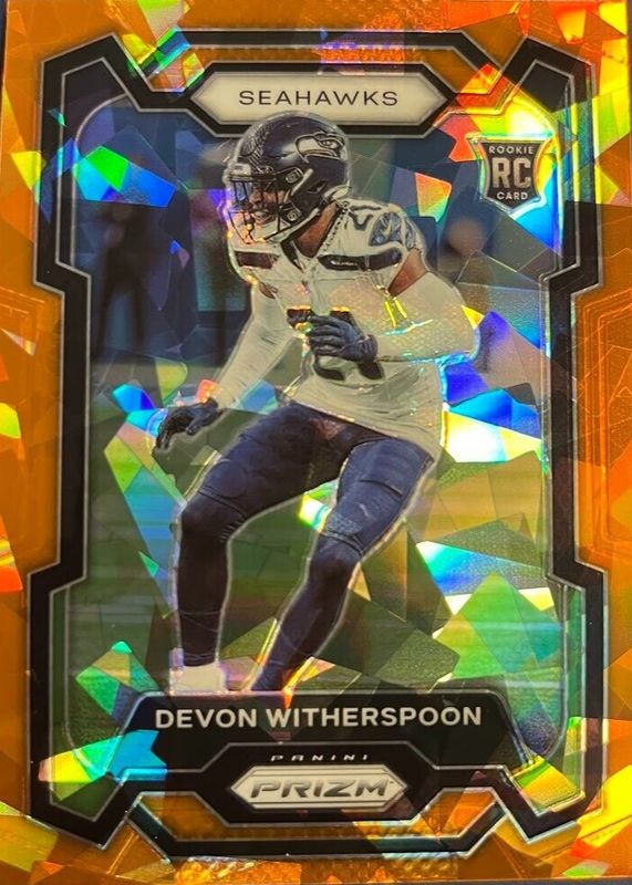 2023 Panini Prizm Football Devon Witherspoon RC Orange Cracked Ice Seahawks #389