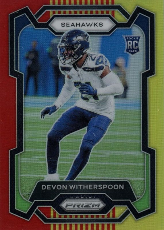 Auctions Ending Soon for Devon Witherspoon 2023 Prizm #389 Red & Yellow (Rookie) /8 RAW