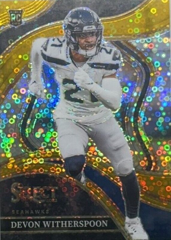 Auctions Ending Soon for Devon Witherspoon 2023 Select #273 Club Level Gold Disco /10 Rookie RAW