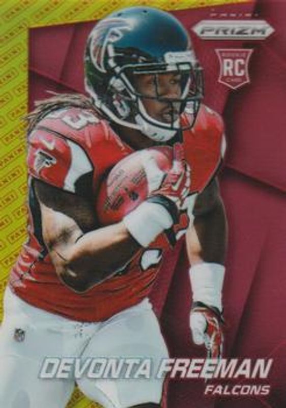 The Devonta Freeman 2014 Prizm #272 Panini Logo Rookie card is 1 of 30 Devonta Freeman's card variations in the 2014 Prizm set being tracked by Sports Card Investor, including Base, Blue, Camo, Green, and Neon Green & Yellow.