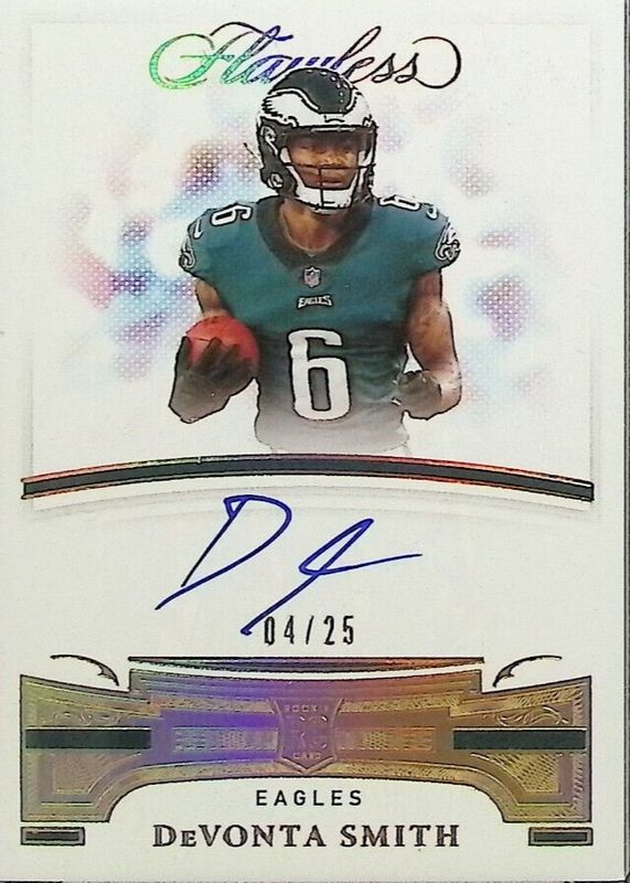 The DeVonta Smith 2021 Flawless #FRS-DVS Flawless Rookie Signatures (/25) card in Raw condition has not changed in price in the last 30 days and was last sold for $184.50 .