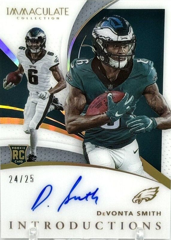 The DeVonta Smith 2021 Immaculate #II-DS Immaculate Introductions Autographs (/25) Rookie card in Raw condition has not changed in price in the last 30 days and was last sold for $175.00 .