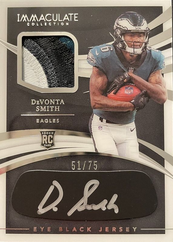 2021 Donruss Immaculate Devonta Smith Eye Black Jersey RPA /75 Eagles🦅 + others