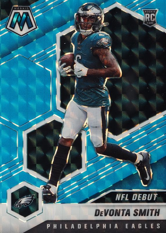 DeVonta Smith 2021 Mosaic #246 NFL Debut - Blue Fluorescent /15 Rookie RAW Price Guide