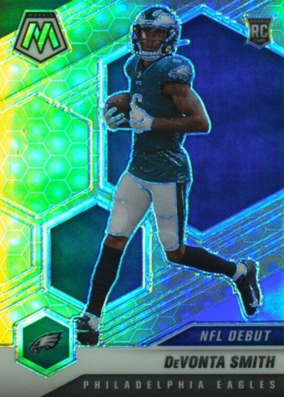 The DeVonta Smith 2021 Mosaic #246 NFL Debut - Honeycomb /(SSP) Rookie card in Raw condition has not changed in price in the last 30 days and was last sold for $46.00 .