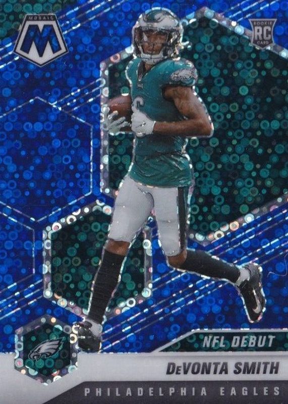 Recent Sales of DeVonta Smith 2021 Mosaic #246 NFL Debut - No Huddle Blue /75 Rookie Raw