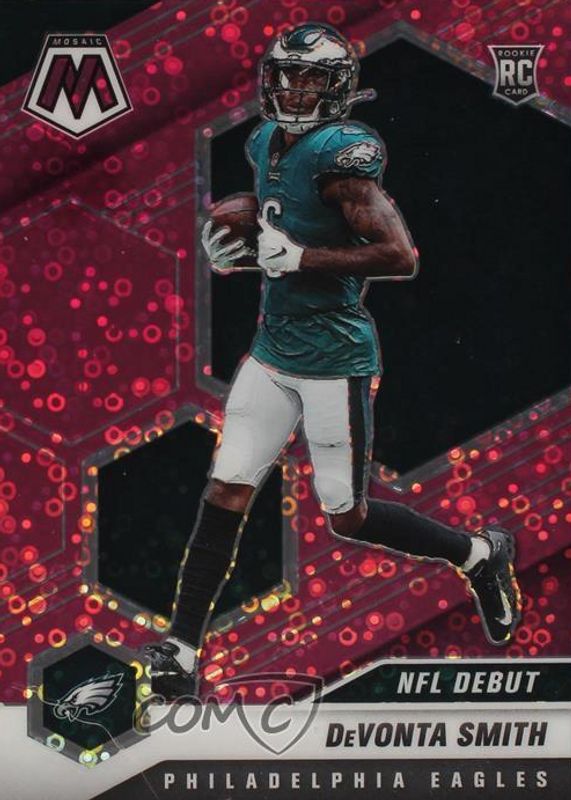 Recent Sales of DeVonta Smith 2021 Mosaic #246 NFL Debut - No Huddle Pink /20 Rookie BGS 9
