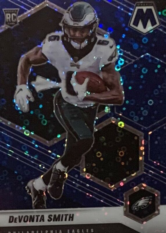 2021 panini mosaic Devonta Smith #305 no huddle blue disco Rc card Eagles/75