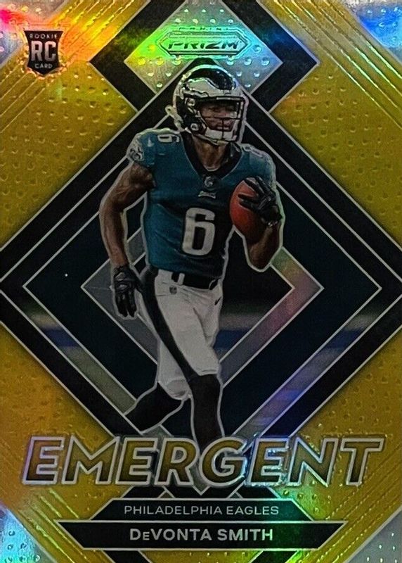 2021 Panini Prizm Devonta Smith RC Prizm Emergent GOLD 09/10 Philadelphia Eagles