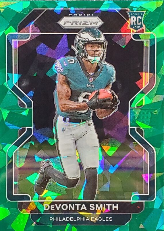 2021 Prizm Football Devonta Smith Green Cracked Ice Rookie SSP Eagles #335