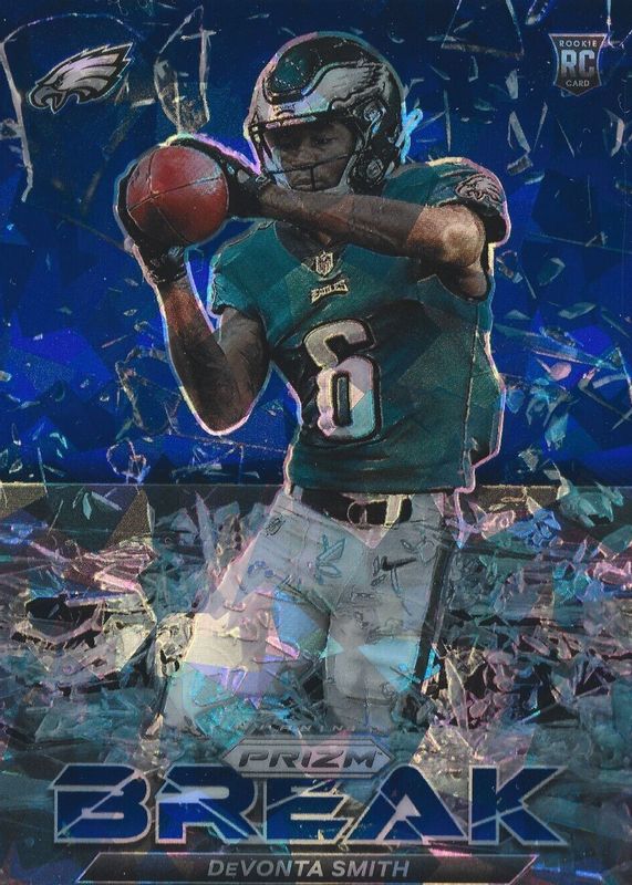 The DeVonta Smith 2021 Prizm #PB-10 Prizm Break - Blue Ice /99 Rookie card in Raw condition has not changed in price in the last 30 days and was last sold for $7.00 .