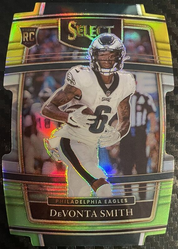 The DeVonta Smith 2021 Select #49 Concourse Green & Yellow Die-Cut Rookie card in Raw condition has moved down -$0.74 (-24.7%) in the last 30 days and was last sold for $2.25 .