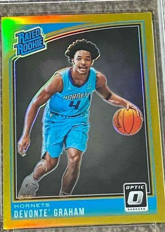 The Devonte' Graham 2018 Optic #189 Gold /10 Rookie card in Raw condition has not changed in price in the last 30 days.