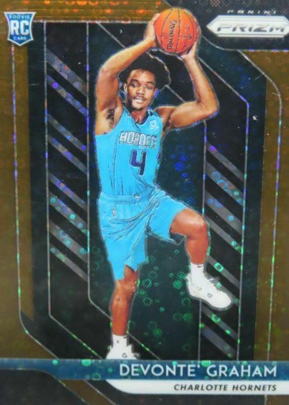 The Devonte' Graham 2018 Prizm #288 Fast Break Bronze /20 Rookie card in Raw condition has not changed in price in the last 30 days and was last sold for $21.50 .