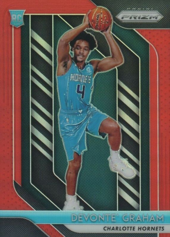 The Devonte' Graham 2018 Prizm #288 Red /299 Rookie card in Raw condition has not changed in price in the last 30 days and was last sold for $2.00 .