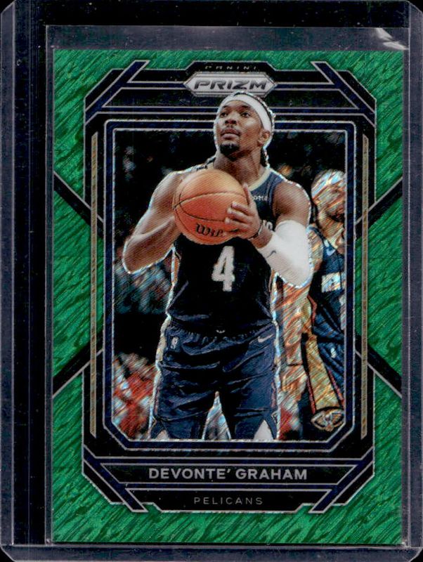 The Devonte' Graham 2022 Prizm #218 Green Shimmer /5 card is 1 of 53 Devonte' Graham's card variations in the 2022 Prizm set being tracked by Sports Card Investor, including Base, Blue Wave, Choice Blue Yellow Green, Fast Break, and Green.