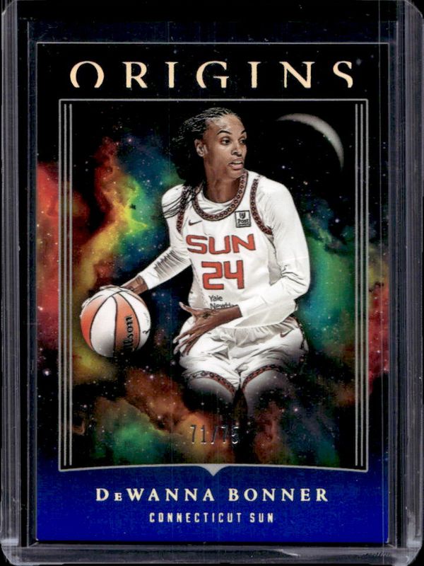 The DeWanna Bonner 2024 Origins WNBA #23 Blue /75 card is 1 of 17 DeWanna Bonner's card variations in the 2024 Origins WNBA set being tracked by Sports Card Investor, including Base, Red /99, Swirl /(SSP), Teal /49, and Purple /25.
