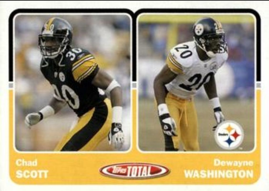 The DeWayne Washington 2003 Topps Total #424 Base card is 1 of 2 DeWayne Washington's card variations in the 2003 Topps Total set being tracked by Sports Card Investor, including Silver.