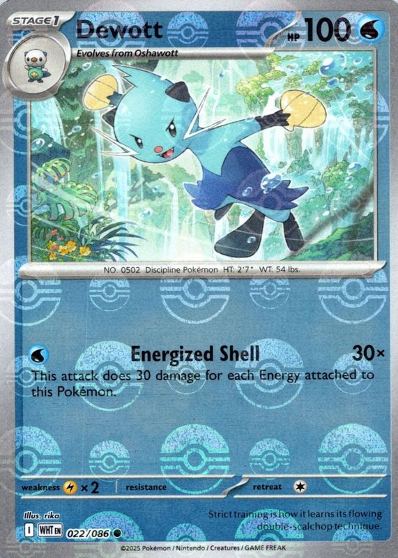 2025 Pokemon White Flare Dewott Poke Ball Holo 022/086 Near Mint