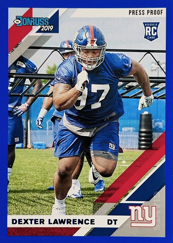 The Dexter Lawrence 2019 Donruss #257 Press Proof Blue Rookie card in Raw condition has not changed in price in the last 30 days and was last sold for $3.96 .