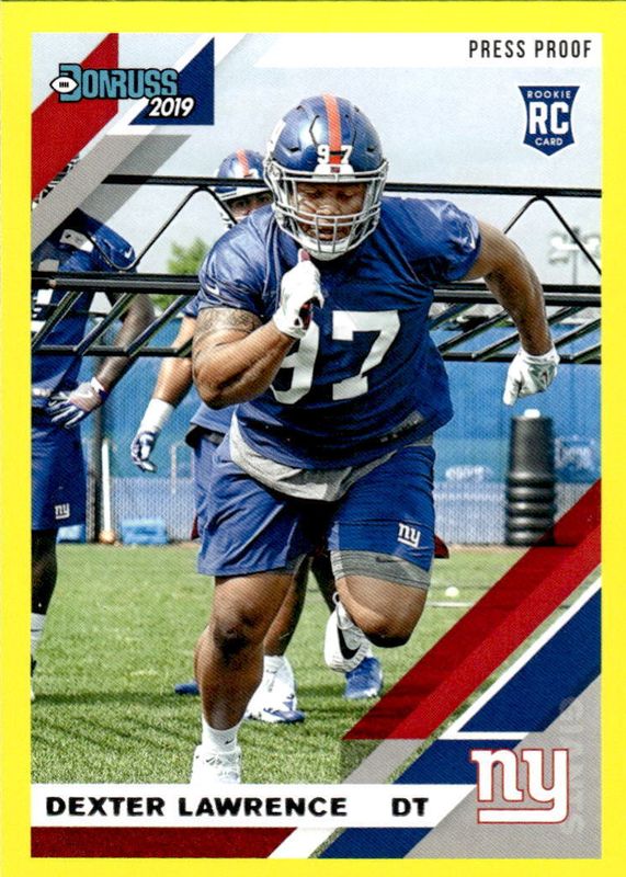 The Dexter Lawrence 2019 Donruss #257 Press Proof Yellow Rookie card in Raw condition has not changed in price in the last 30 days and was last sold for $1.49 .