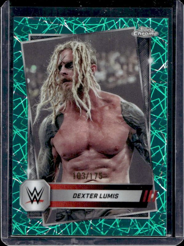 The Dexter Lumis 2025 Topps Chrome WWE #40 Teal Lazer Refractor /175 card is 1 of 50 Dexter Lumis' card variations in the 2025 Topps Chrome WWE set being tracked by Sports Card Investor, including Base, Black & Gold Refractor, Geometric Refractor, Neon Green & Black Refractor, and Pink Shimmer Refractor.