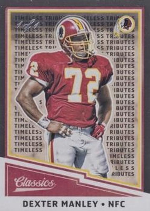 The Dexter Manley 2017 Classics #104 Timeless Tributes - Black /1 card is 1 of 17 Dexter Manley's card variations in the 2017 Classics set being tracked by Sports Card Investor, including Base, Glossy, Glossy (Gold Border), Red Back /299, and Blue Back (1st Edition) /175.