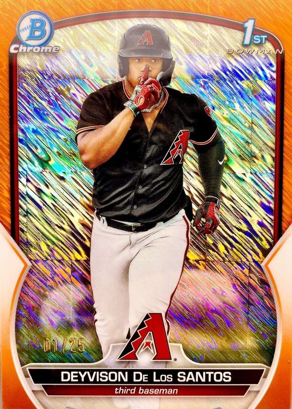 Deyvison De Los Santos 2023 Bowman #BCP-116 Chrome Prospects - Orange Shimmer Refractor /25 (1st) RAW Price Guide