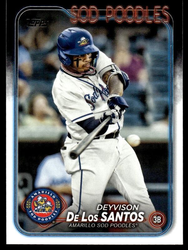 The Deyvison De Los Santos 2024 Topps Pro Debut #PD-111 Base card is 1 of 22 Deyvison De Los Santos' card variations in the 2024 Topps Pro Debut set being tracked by Sports Card Investor, including Fuchsia Foil /199, Sparkle Foil /175, Blue Foil /150, Green Foil /99, and Aqua Foil /75.