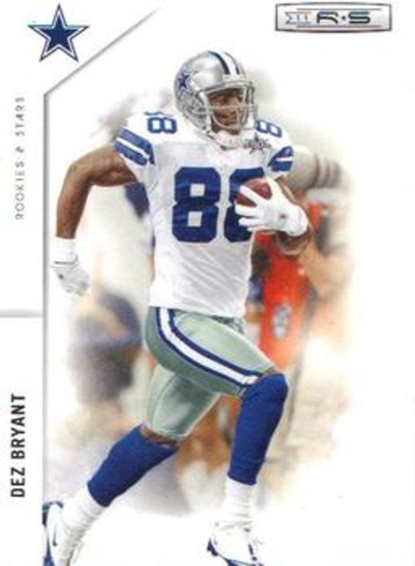 The Dez Bryant 2011 Rookies & Stars #38 Base /299 card is 1 of 6 Dez Bryant's card variations in the 2011 Rookies & Stars set being tracked by Sports Card Investor, including Gold, Longevity Silver /249, Longevity Silver Holofoil /99, Longevity Gold /49, and Longevity Platinum /25.