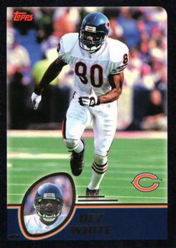 The Dez White 2003 Topps #164 Black /150 card is 1 of 4 Dez White's card variations in the 2003 Topps set being tracked by Sports Card Investor, including Base, Topps Collection, and Gold /499.